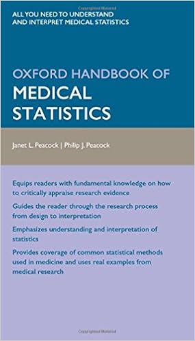Written in an simply available variety, the Oxford instruction manual of scientific Statistics offers medical professionals and scientific scholars with a concise and thorough account of this usually tough topic. It promotes realizing and interpretation of statistical equipment throughout quite a lot of issues, from research layout and pattern measurement issues, via t- and chi-squared assessments, to advanced multifactor analyses, utilizing examples from released examine. References for extra analyzing are given for additional information on particular topics.